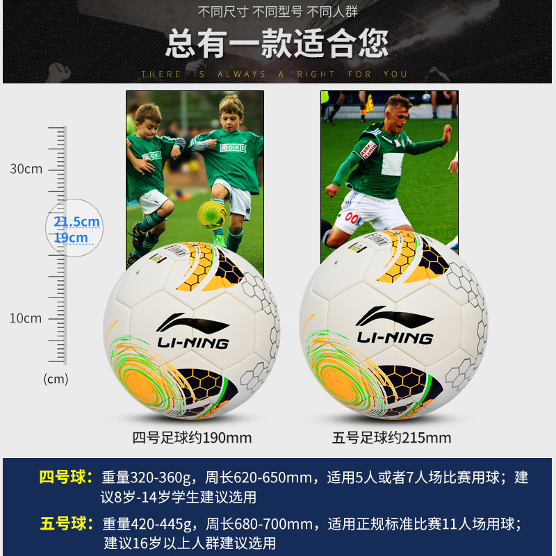 • 百事乐天运动专营店李宁足球5号球4号球成人标准训练比赛级复合足球防滑耐磨高弹贴皮34/4